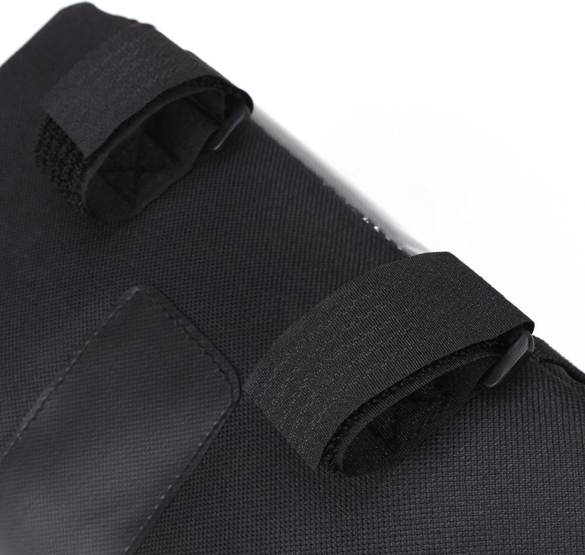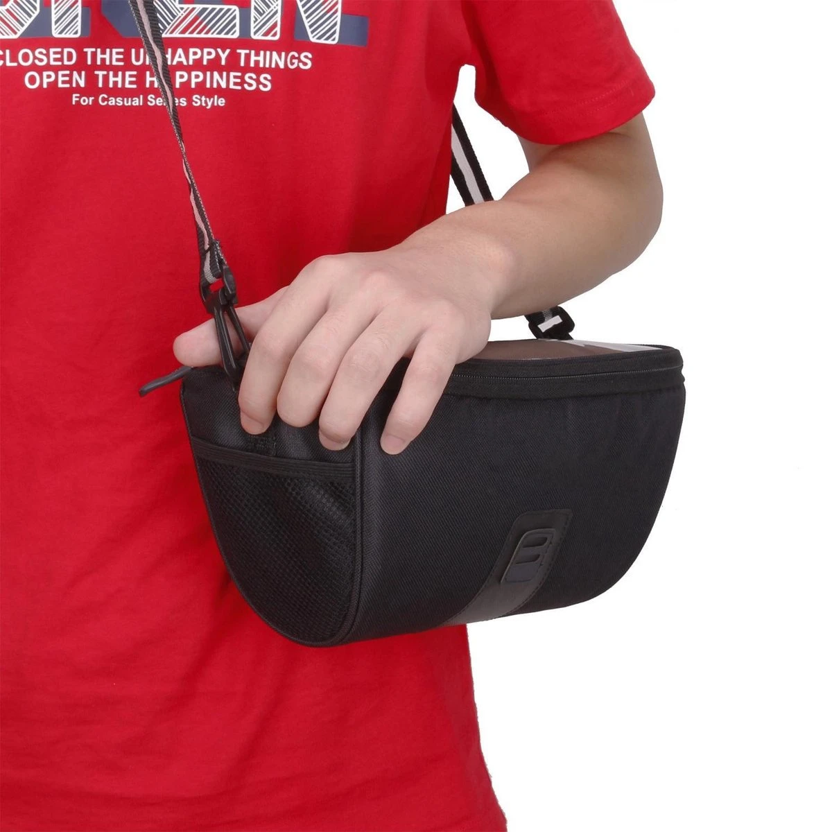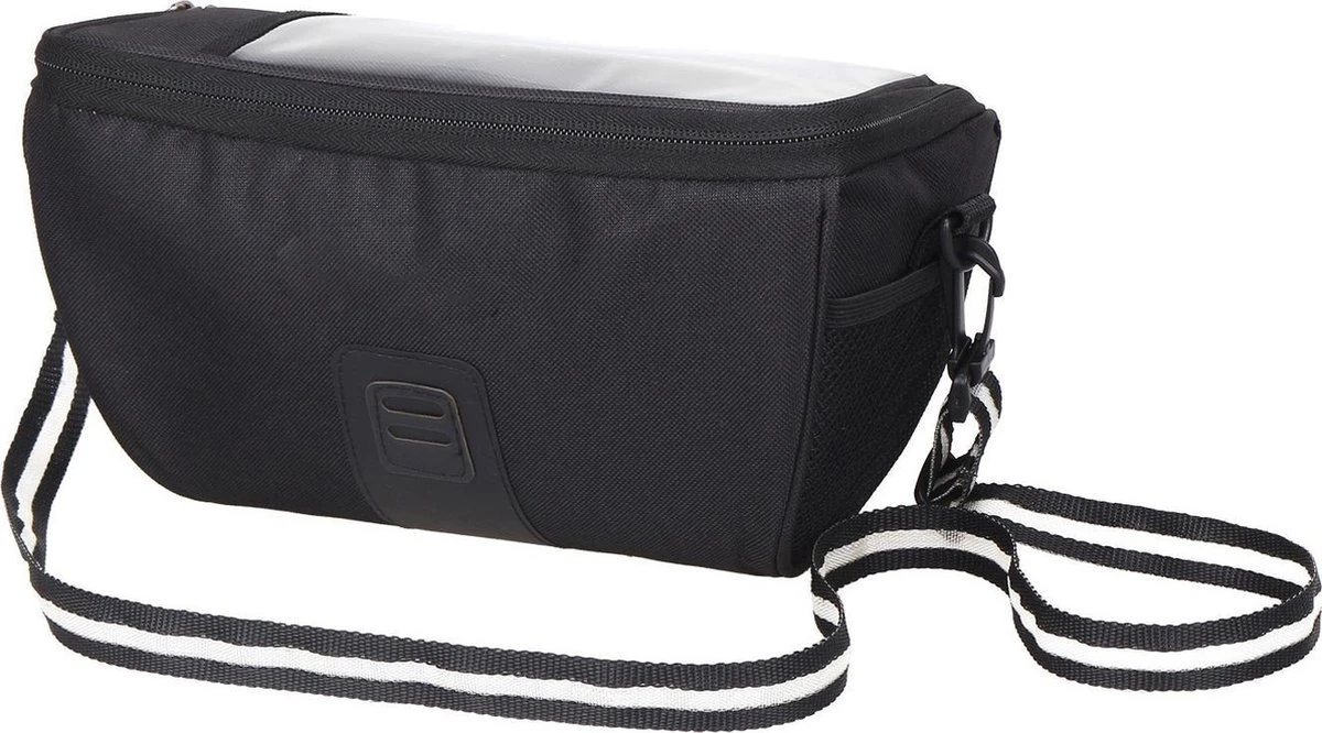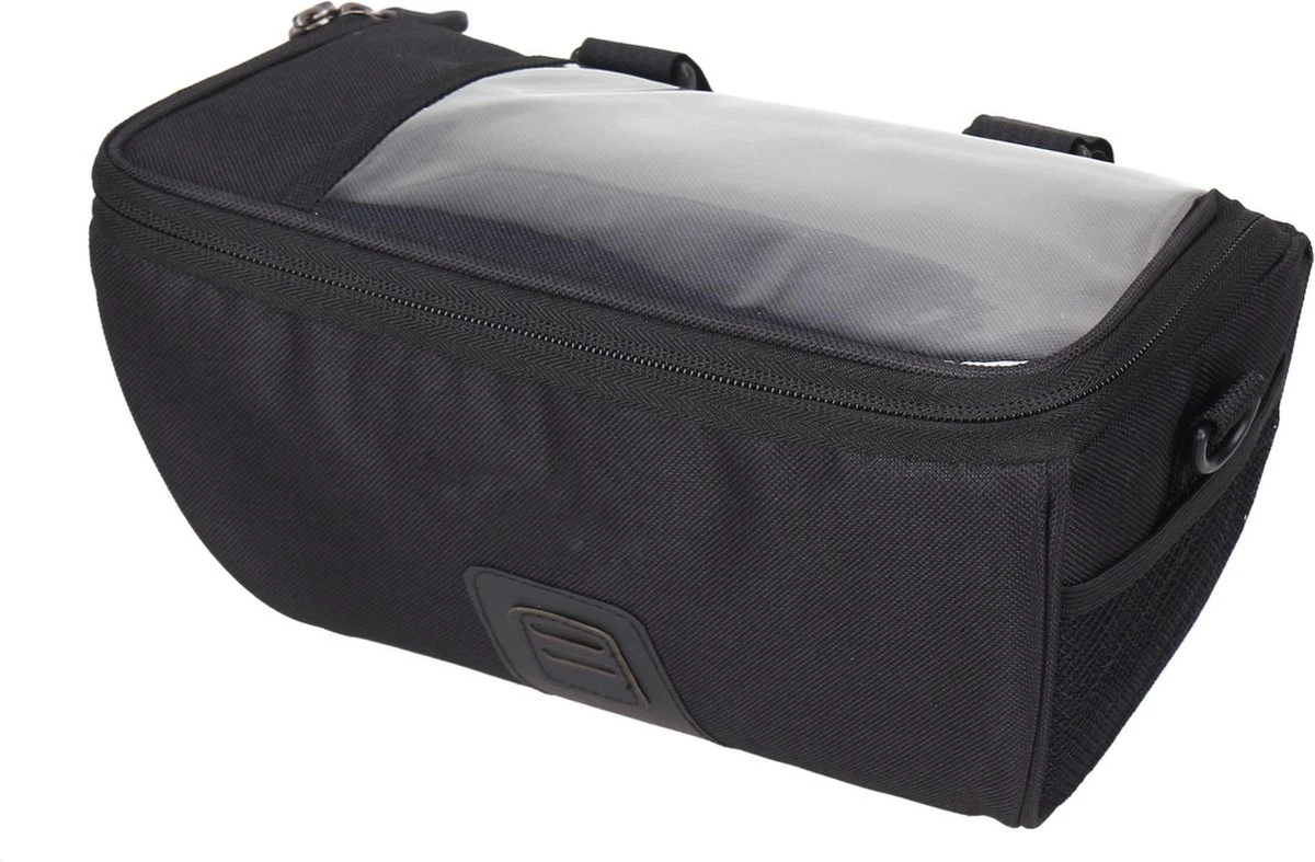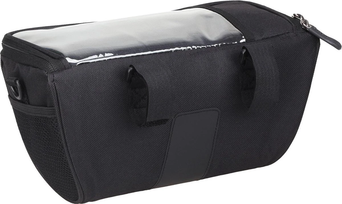 Met deze handige fietstas heeft u al spullen binnen handbereik. De bovenkant van deze tas is voorzien van een transparant insteekvak, waarin u een smartphone kunt opbergen voor bijvoorbeeld de navigatie of een fietskaart. Aan de beide zijkanten van de fietstas zit een zakje van mesh stof. Heel handig voor kleine spullen. De bevestiging is eenvoudig met gespen. De tas is eenvoudig van de fiets te halen en mee te nemen als draagtas.
