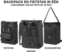 Enkele Fietstas | Rugzak | Fietstas & Rugtas In 1 | Zwart | Waterdicht | 22 Liter | Combinatie