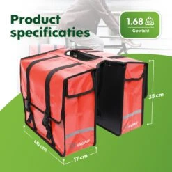 BayNL- Waterdicht – Dubbele – Bisonyl – Fietstas- Reflectoren – Zwart – 34cmX16.2cmX32cm=35 Liter