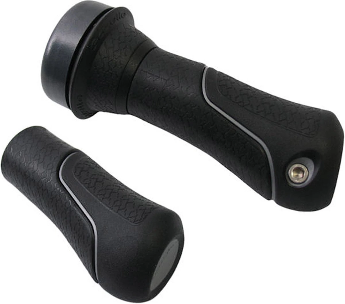 Gazelle handvatten met draaibel br /br /Comfortabele leren handvatten, waarvan het linker handvat is voorzien van een geintegreerde fietsbel. br /br /Specificaties: br /Lengte grepen: 105 mmbr /Totale lengte linker handvat: 150 mmbr /Kleur: zwartbr /Materiaal: rubberbr /Klemdiameter: 22,2 mmbr /Met een inbussleutel zijn de handvatten te monteren.